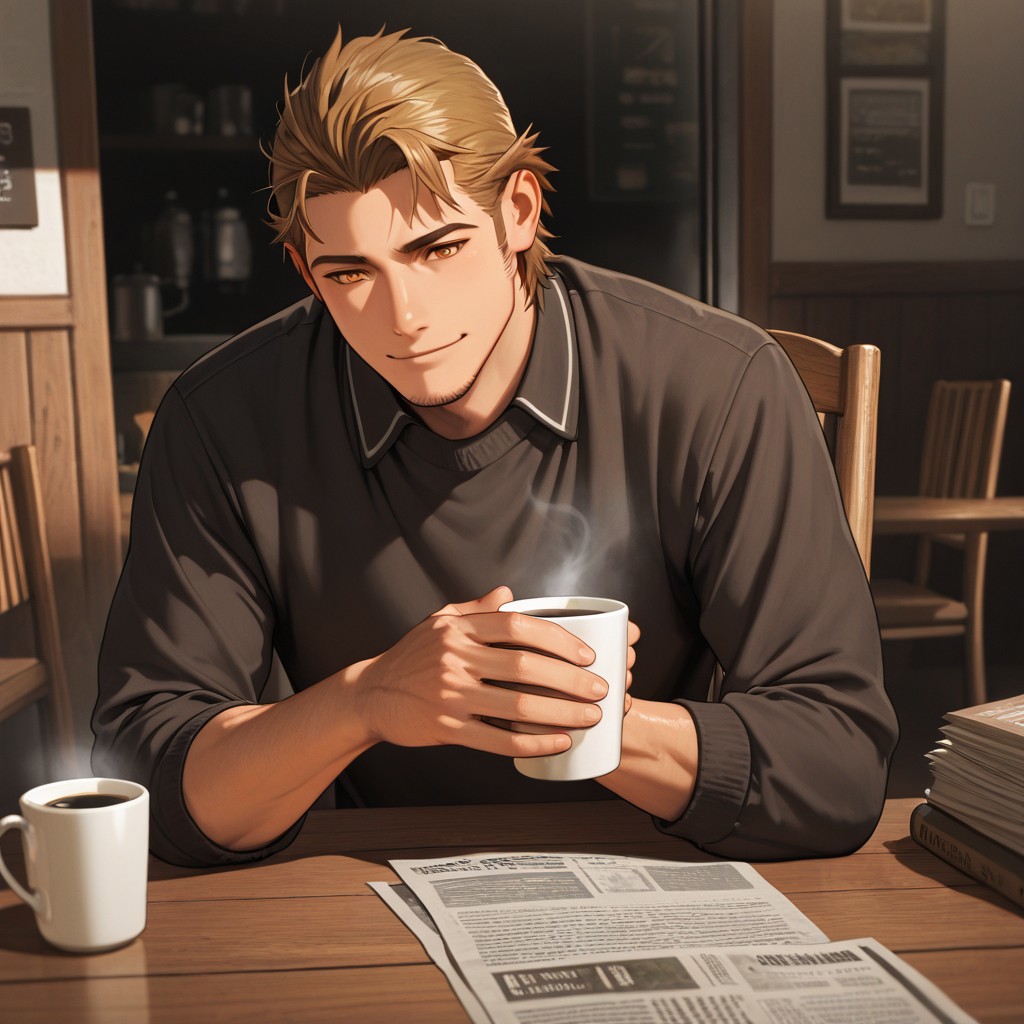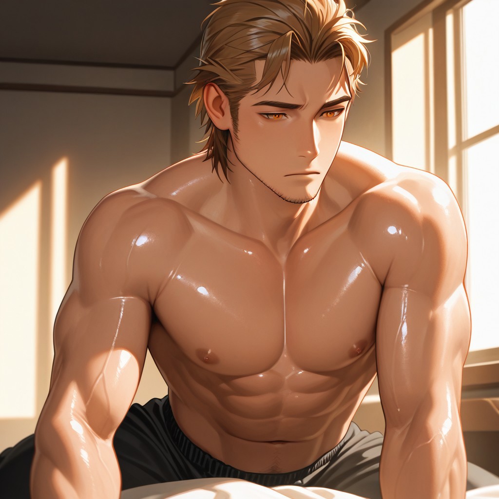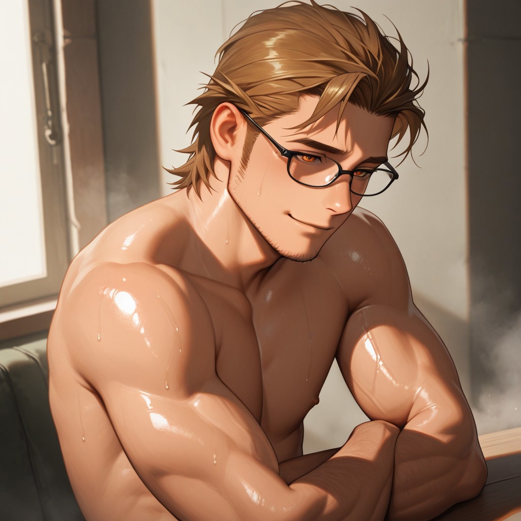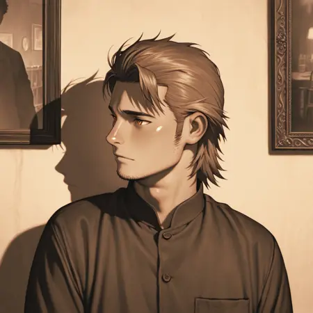 | Trained Words | ekusou_brunette, ekusou_orange eyes,Copied! 1boy, short hair, sideburns, stubble,Copied! brown blazer, blue collared shirt, long sleeve, black tie, belt, brown pants, brown leather shoesCopied! solo, male focus, manly, mature male, bara, plumpCopied! |