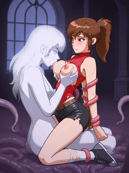 Vena - Verna,棕色头发,马尾辫,黑色短裤,红色上衣,无袖
