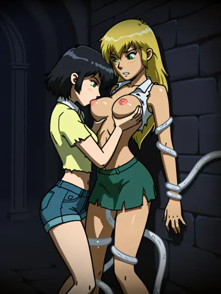 Rixa - Rixa,金色头发,长发,敞开式白色领上衣,牛仔短裤,绿色眼睛,露脐