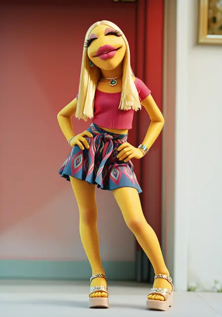 janice, long hair, blonde hair, closed eyes, lips, eyelashes, makeup, yellow skin