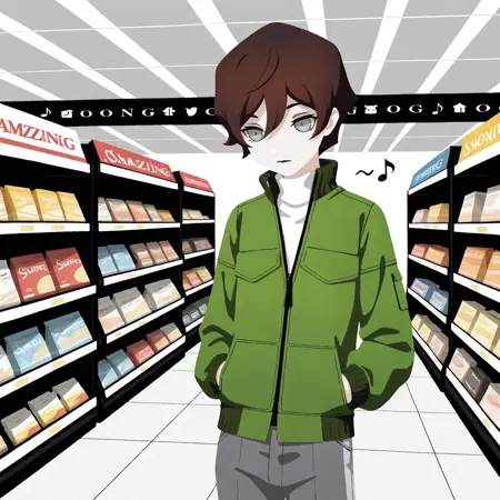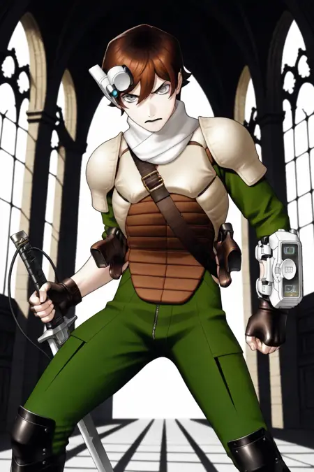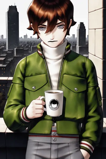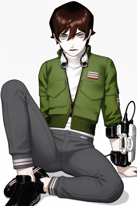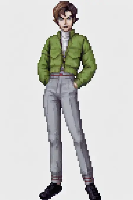 Useful negative tags: brown jacket, black jacket, striped jacket, one eye covered