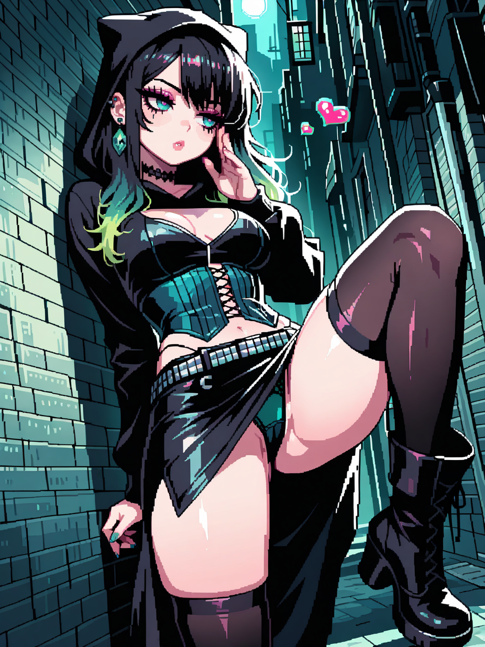 픽셀 일루스트리어스는 레트로 애니메이션 및 사이버 판타지 스타일로 생동감 있고 표현력 풍부한 픽셀 아트를 생성하는 체크포인트입니다. 빛나는 헤어스타일, 세부적인 복장, 미래적 액세서리, 독특한 배경(네온불빛 도시에서 만개한 들판까지)이 특징인 인상적인 여성 캐릭터를 만들기에 이상적입니다. 이 스타일은 16비트 또는 32비트 비디오 게임을 연상시키는 아트를 생성하는 뛰어난 능력을 지니며, 부드러운 색조, 빛나는 눈동자, 높은 수준의 감정 표현을 특징으로 합니다.