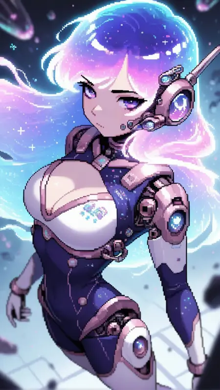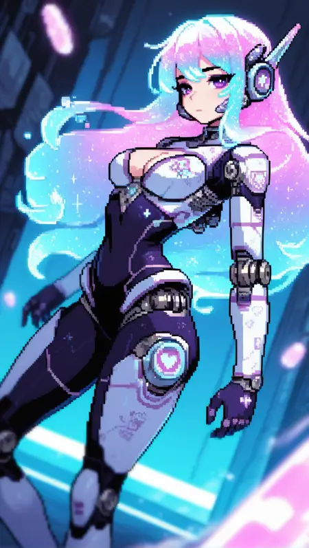 픽셀 일루스트리어스는 레트로 애니메이션 및 사이버 판타지 스타일로 생동감 있고 표현력 풍부한 픽셀 아트를 생성하는 체크포인트입니다. 빛나는 헤어스타일, 세부적인 복장, 미래적 액세서리, 독특한 배경(네온불빛 도시에서 만개한 들판까지)이 특징인 인상적인 여성 캐릭터를 만들기에 이상적입니다. 이 스타일은 16비트 또는 32비트 비디오 게임을 연상시키는 아트를 생성하는 뛰어난 능력을 지니며, 부드러운 색조, 빛나는 눈동자, 높은 수준의 감정 표현을 특징으로 합니다.
