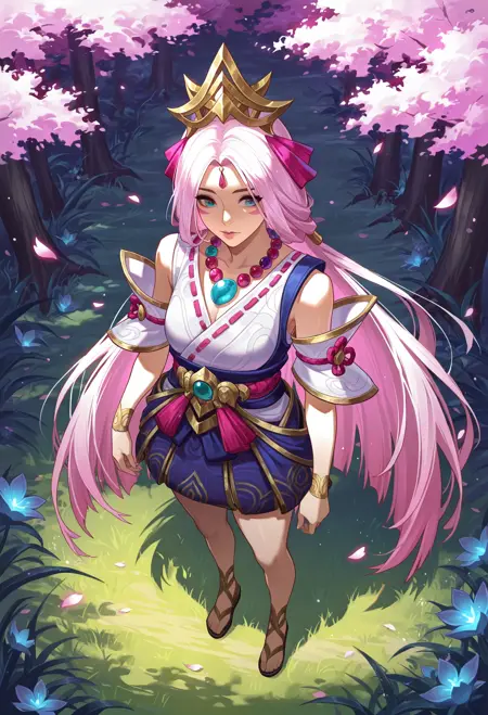| 训练词汇 | sba, lips,sba outfit, long hair, sandals, standing, bracelet, bare shoulders, detached sleeves, hair ornament, jewelry, very long hair, pink hair, white hair,necklace, parted bangs, facial mark, beads, bead necklace, 已复制! bow \(weapon\), holding,已复制! |
