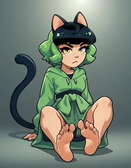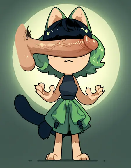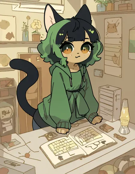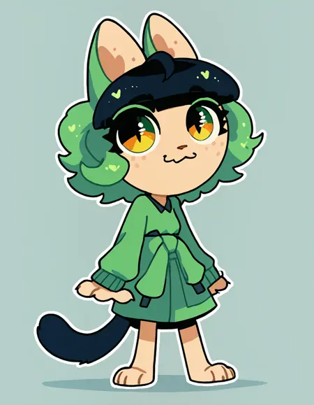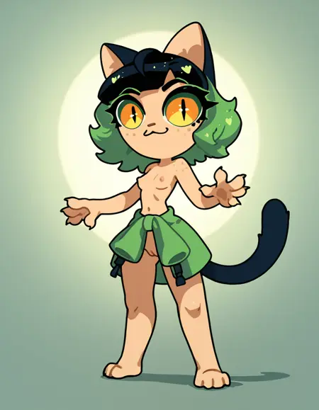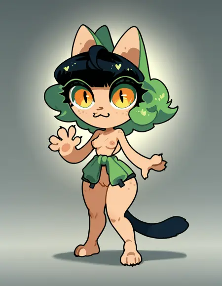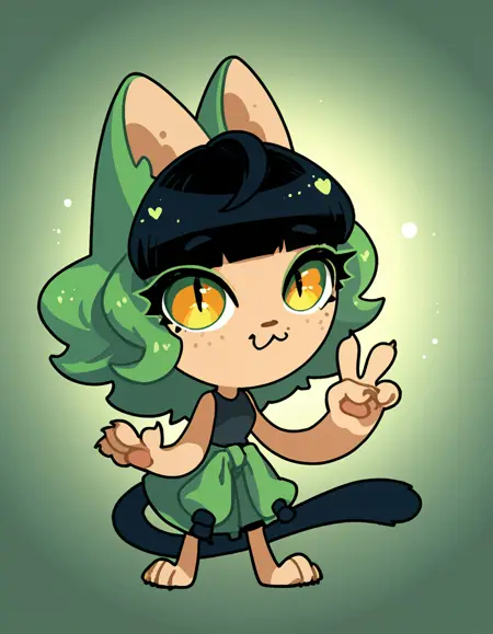 雀斑,绿发,双色发,多彩发,动物耳朵,猫耳,猫尾,尾巴,
