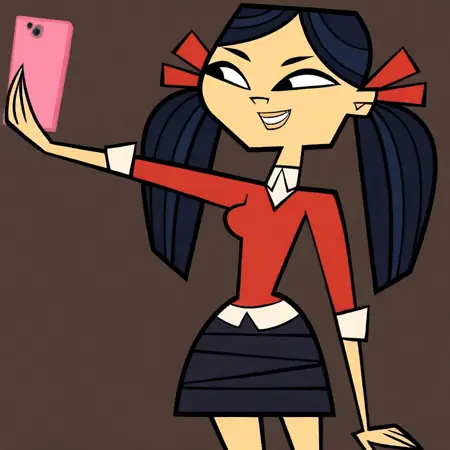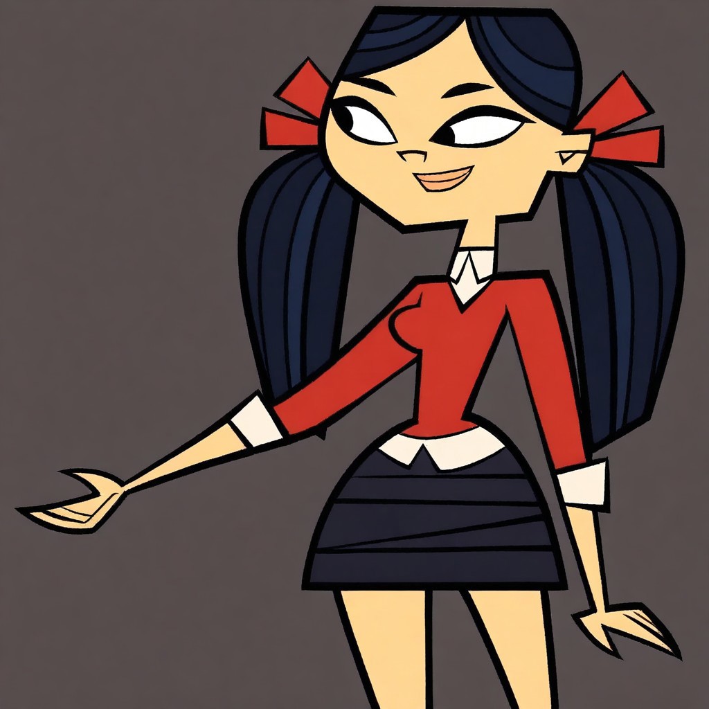 kitty tdrr, dark blue hair, red hair ties, long pigtails, black eyes