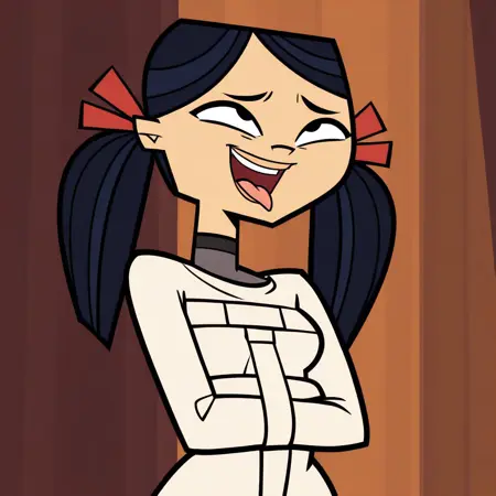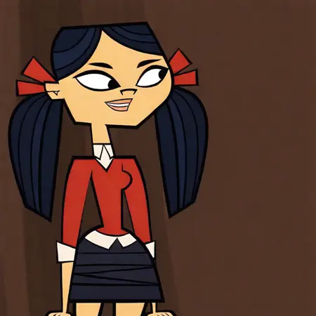 kitty tdrr, dark blue hair, red hair ties, long pigtails, black eyes