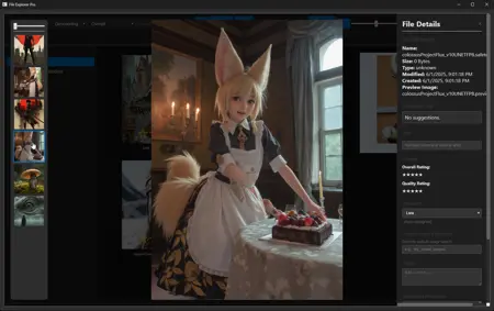 有一些专为稳定扩散设计的特殊功能:被分类为“检查点”或“LoRA”的文件支持画廊视图,程序会查找文件名中包含该检查点或 LoRA 名称的最新图像(和视频!)(也支持文件名中的自定义关键词),并在画廊中与对应的检查点文件一同显示。我发现这对于评估新的检查点和 LoRA 非常有帮助。