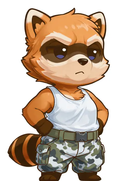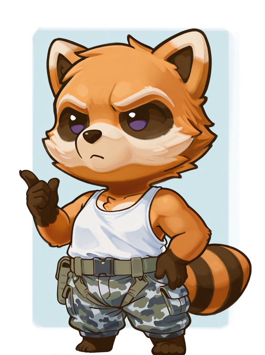 트리거: Spiffo, 너구리, 주황색 몸체, 치비