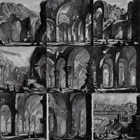 however, their resolution, tagging and chopping is all over the place, this model reinforces the concepts and art style based on high quality 1024 full-sized images without borders text and descriptions from the original artworks of Giovanni Battista Piranesi. they are based on high quality scans by the University of Tokyo library in the Kamei Collection. the images have been properly tagged and perfectly chopped as well as edited to remove numbers and comments and text embedded in the images.