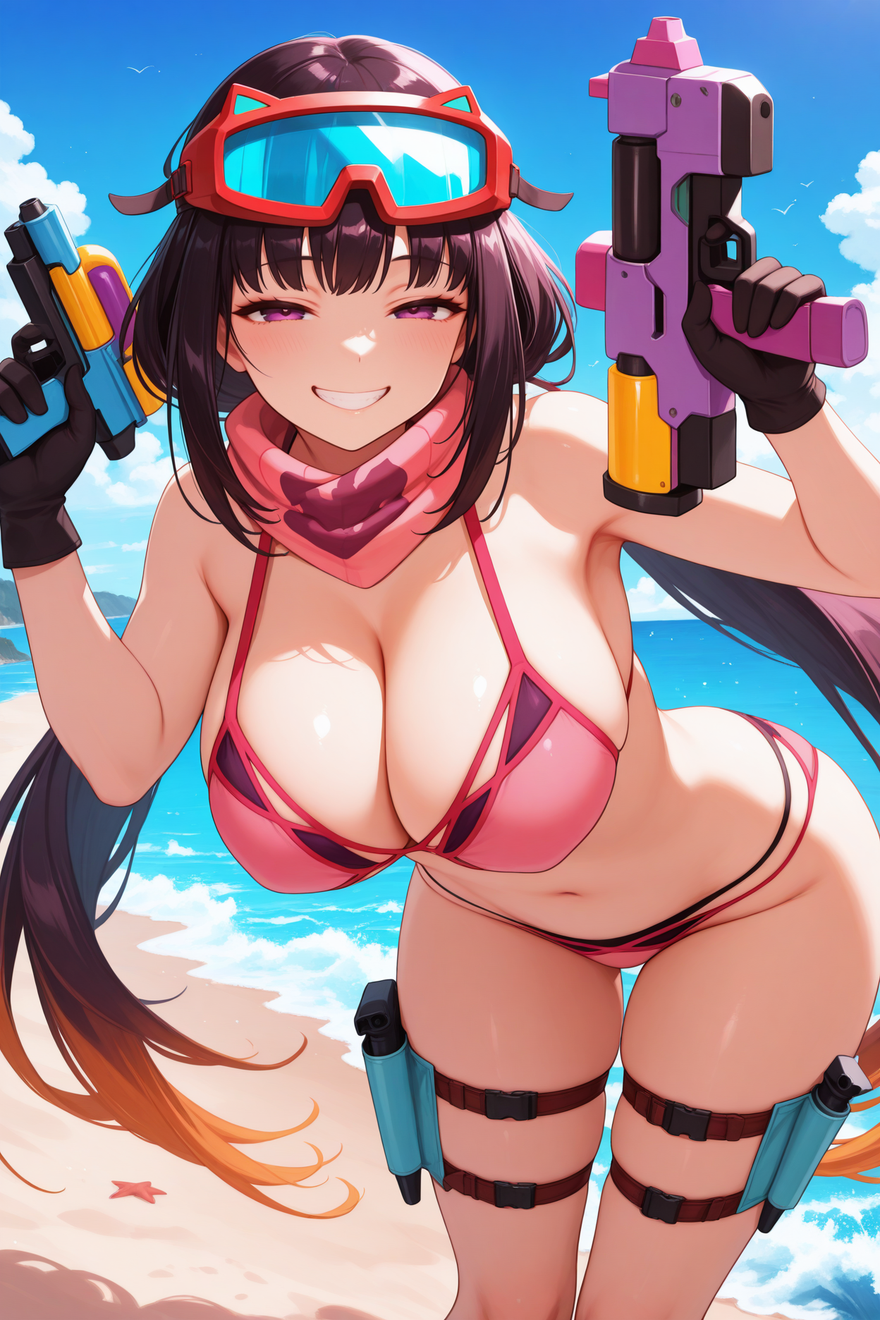 • 大阪姫(アーチャー)(2段階覚醒)には「2saohme、黒髪、非常に長い髪、低めのツインテール、紫の目、頭にゴーグル、マルチカラーのビキニ、ピンクのビキニ、ピンクのスカーフ、太ももストラップ、黒い手袋」を追加してください。