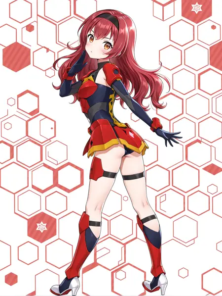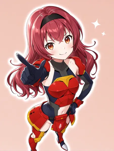 トリガーワード ・k_ema,hairband,long hair,red hair,brown eyes,