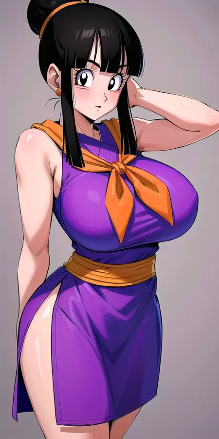 다음 조합에서 좋은 결과를 얻었습니다: lora:Chichi_DBZ:0.5, Chichi_DBZ, black_eyes, black_hair, hair_bun, big_breasts, jewelry, earrings, ponytail, chinese_clothes
