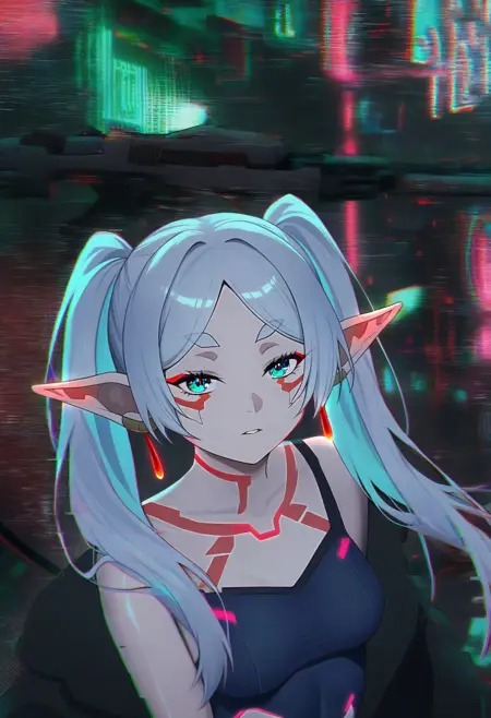 IllustriousXL 风格融合:无缝融入 IllustriousXL 系列特有的细腻、光泽、色彩鲜明的动漫艺术风格,为您的弗里伦作品增添卓越质感。