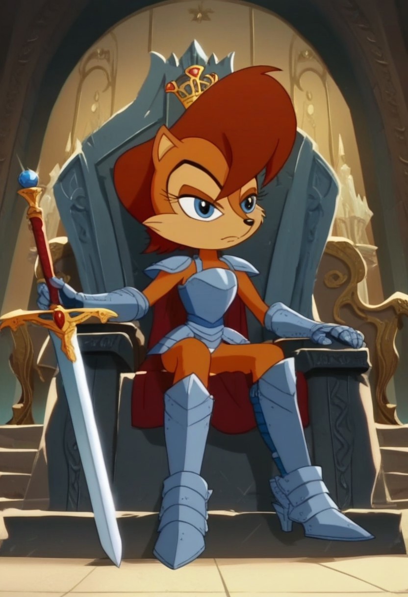 샐리 애커넌. 유명한 체크포인트들은 이미 이 캐릭터를 알고 있으므로, 단순히 "sally acorn"이라고 프롬프트만 주면 잘 작동할 것입니다. 이는 만화에서 보이는 캐릭터의 일반적인 스타일을 쉽게 얻기 위해 제작되었습니다.