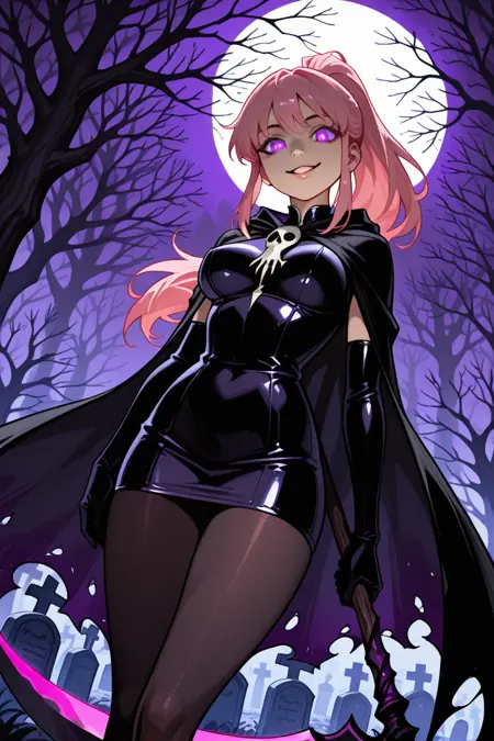 鮮やかなアニメ風デジタルアートスタイルで、豊かで濃厚な色使い、滑らかなグラデーション、そして大胆な色のコントラストが特徴です。