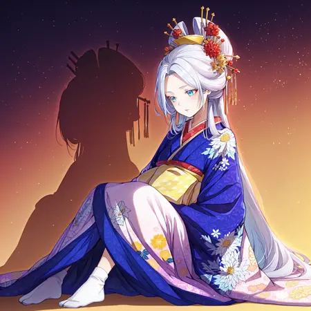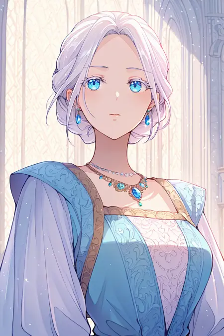 主提示词:dahlia-emp,银发,湛蓝眼睛,长发