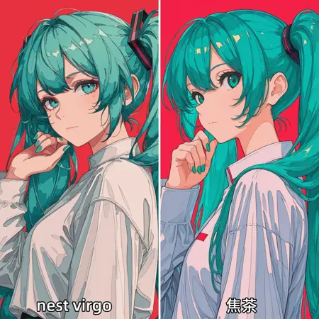 トレーニングに使用した画像は、アーティストのXとInstagramから収集したもので、純粋なnest virgoスタイルのLoRAを実現しました。