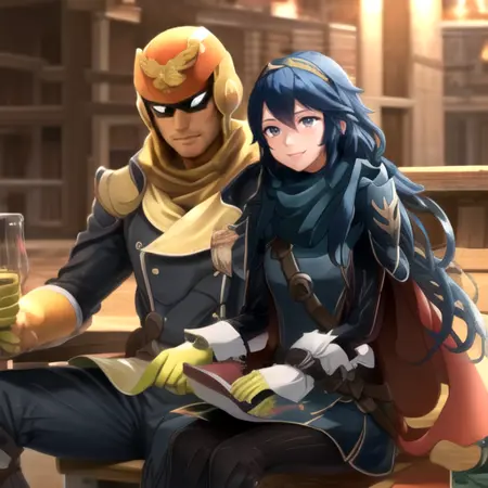 FalconLucina, a man and a woman, hetero, standing, smile, cowboy shot
