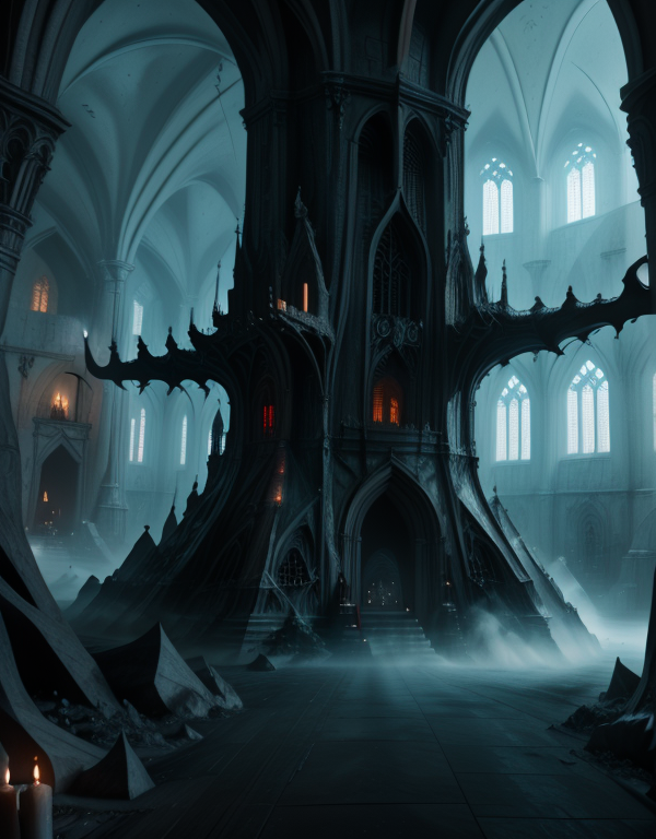 MUR0,极暗,纯黑,中世纪,蜡烛,高天花板,月光,月影,金色,银色,房间,玫瑰窗彩绘玻璃,拱门,中世纪家具,蓝色,精细中世纪建筑,精细墙雕,精细拱雕,