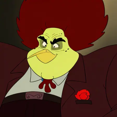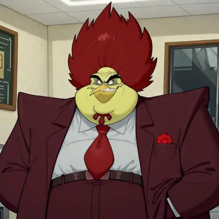 | 训练词汇 | Claudio, solo, furry male, older male, forehead wrinkles, age marks, beak, red hair, fat, wide shoulders, thick eyebrows, formal, white undershirt, reddish brown suit, belt, reddish brown pants, eye bags, red hair, black shoes, red wattle, yellow skin, chicken, red flower on breast pocket,   已复制! |