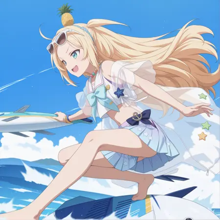Epic Sevenのシャルロット(夏休み)です。アニメ色塗りスタイルでトレーニングされています(深いシェーディングや細部を求める方にはあまり魅力的に感じられないかもしれません)。