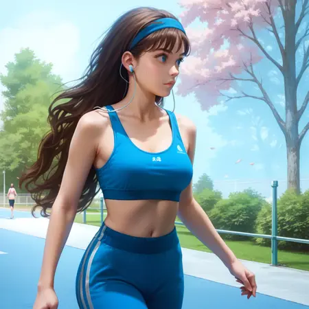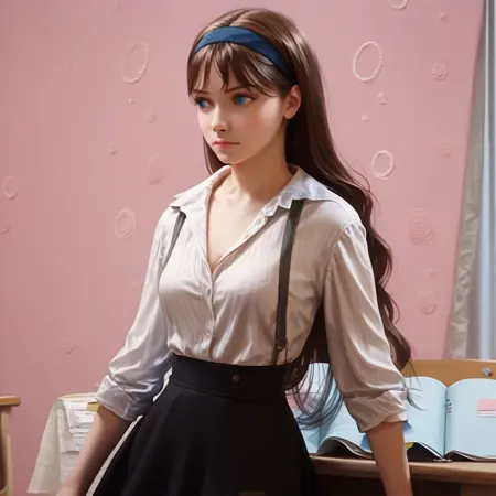 辅助词:棕色头发,长发,发带,蓝眼睛,