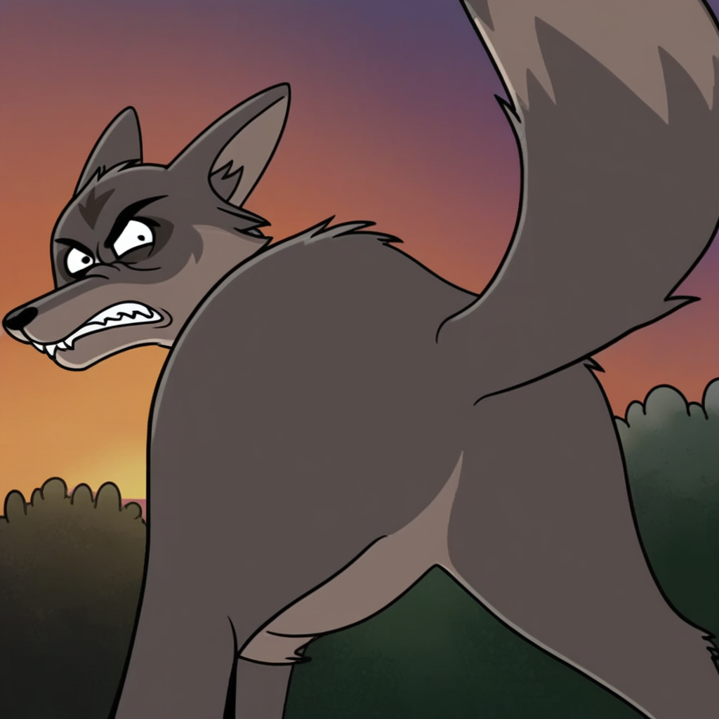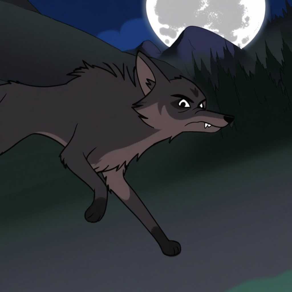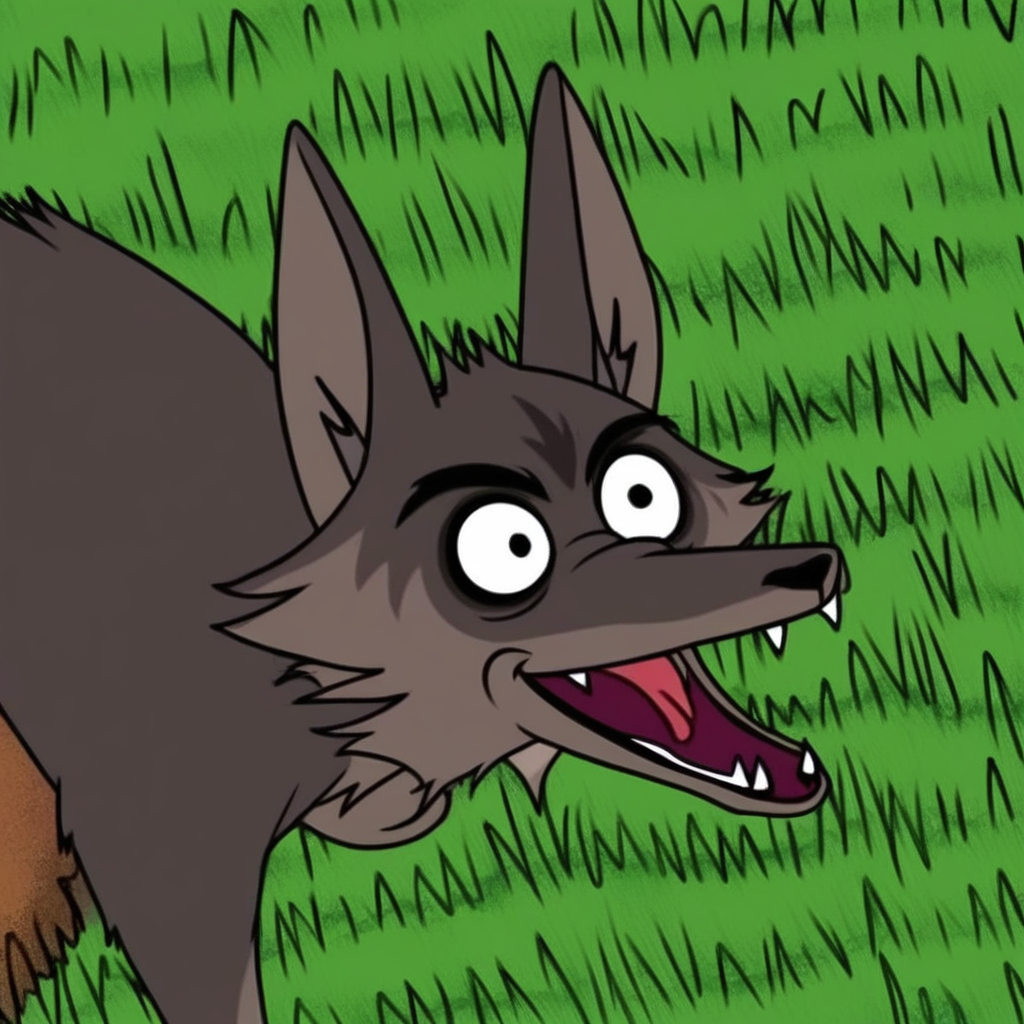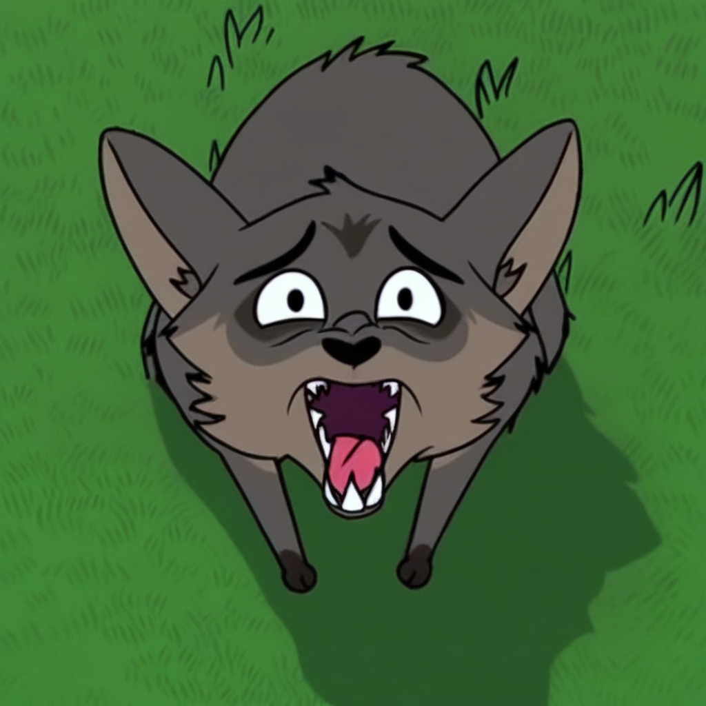 Prompt: scarhead coyote, feral, solo, black eyes, full body