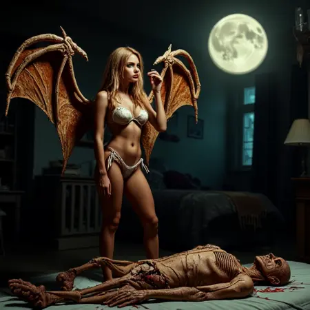 これは私が考えたサキュバス種族のバージョンですが、ちょっと変で面白い形で。彼女は犠牲者から生命力を吸い取り、からからに乾燥したミイラや空洞化した殻にできます。