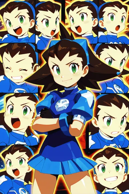 委托创作!这个风格模型可以帮助你生成看起来像前《洛克人》/卡普空艺术家小牧慎介的作品,特别是他在《洛克人星force》中的创作。