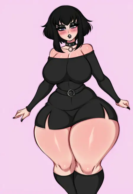 哥特风超女:黑色连衣裙,黑色眼影,黑发,黑色裤袜,黑色口红,腮红,下半身丰满,乳房,大屁股,粗大腿,女性,哥特风,哥特少女,哥特化,粗壮大腿,克里普顿人,项链,PAWG,紫色眼睛,闪亮肌肤,短裙,女超级英雄,粗大腿,大腿,雷神大腿,thunderthighs