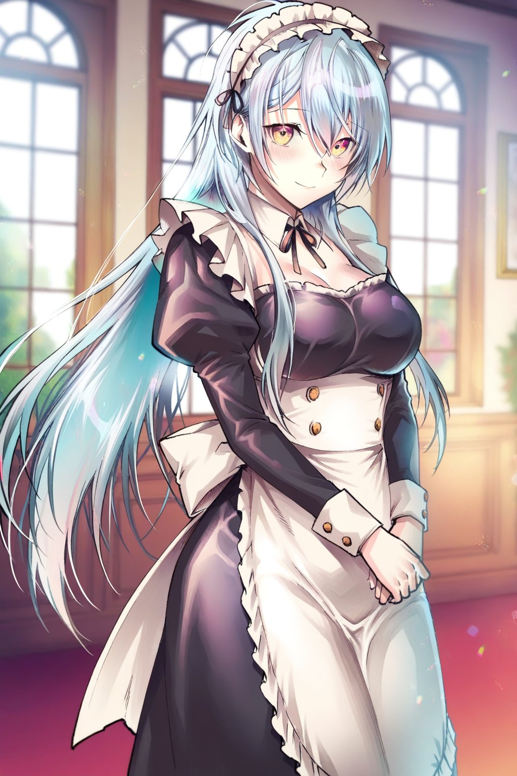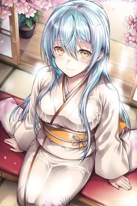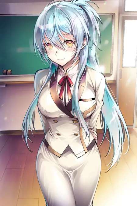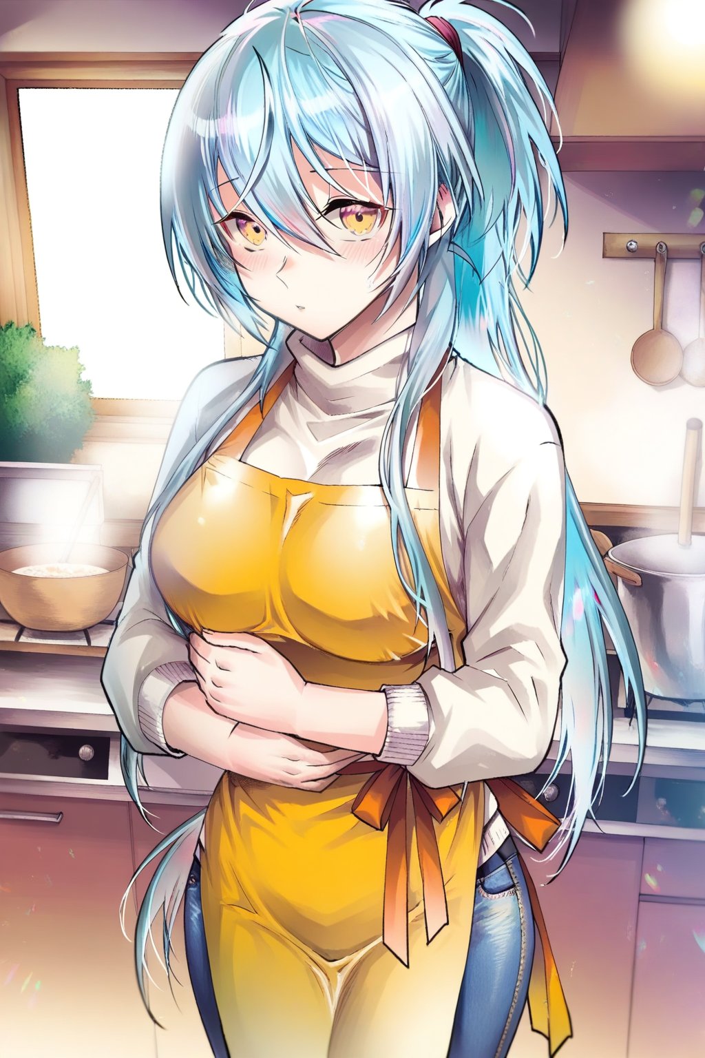 プロンプト:masterpiece, best quality, amazing quality, fine details, Cecilia Aquarain, solo, breasts, medium breasts, long hair, blue hair, hair between eyes, yellow eyes,