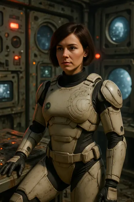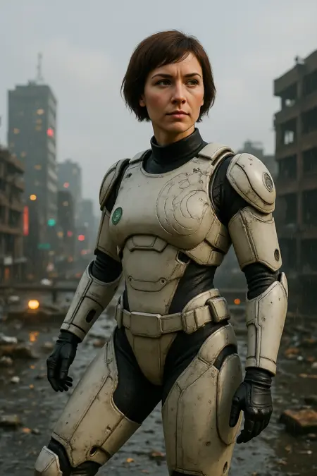 このモデルは、『Murderbot』テレビシリーズに登場するセキュリティユニットのビジュアルスタイルをインスピレーション源とし、特定のリアリストなSFスタイルのキャラクターを生成することを目的としています。摩耗感のある薄い色(ベージュ/薄灰)のセグメント化されたパワーアーマーと、全体的な実用的でタクティカルな美学を正確に再現します。