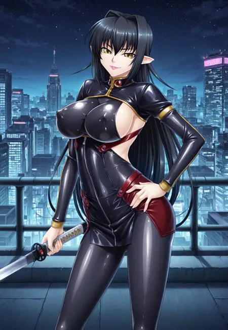 标签:安诺萝丝·瓦吉拉,黄眼睛,吊梢眼,妆容,口红,洋红色嘴唇,巨乳,曲线玲珑,极长头发,黑发,发丝遮挡,发丝间于双眼,尖耳,长腿