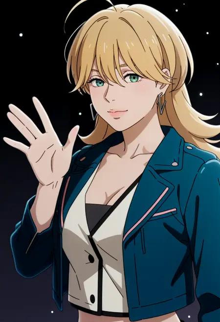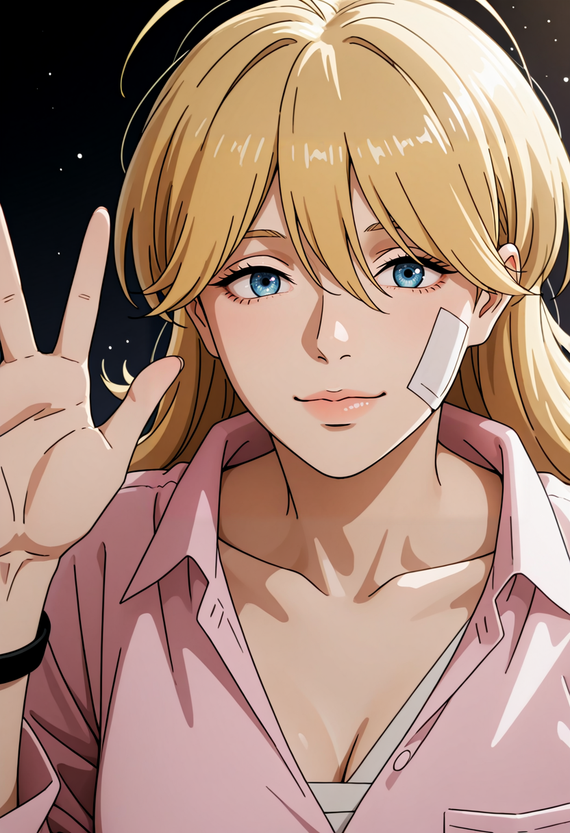 | トレーニングワード | workoutfit1, 1girl, long blonde hair, bangs, messy hair, blue eyes, medium breast, cleavage | blue jacket, cropped jacket, short jacket, collared jacket, long sleeves, pink trim | white light-colored vest, sleeveless vest, buttoned vest, black bra (visible under vest), tube top (visible under vest), midriff (visible) | black long pants, ripped knees, torn pants, コピーしました! cleaneroutfit2, 1girl, long blonde hair, bangs, messy hair, blue eyes, medium breast, cleavage, | baseball cap, black cap, | jumpsuit, blue jumpsuit, collared, v-neck, black belt, black buckle, black undershirt, short sleeves (rolled up), chest pockets,| black wristband, earringsコピーしました! Nightoutfit3, 1girl, long blonde hair, bangs, messy hair, blue eyes, medium breast, cleavage | black dress, long dress, sleeveless dress, low cut dress, plunging neckline, cleavage, belt, thigh-high slit, long slit, blue bra, | choker, bracelet , armband, earrings, purse, bare shoulders, bare arms, bare legs, コピーしました! bakinioutfit4, 1girl, long blonde hair, bangs, messy hair, ponytail , blue eyes, medium breast, | bikini, orange bikini, triangle top, bikini bottoms, side-tie bikini, bare shoulders, bare arms, | black wristband, snorkel, diving maskコピーしました! pajamasoutfit5, 1girl, long blonde hair, bangs, messy hair, blue eyes, medium breast, cleavage, bandage on cheek, | pink shirt, button-up shirt, collared shirt, long sleeves, loose shirt, chest pocket, | black wristbandコピーしました! |