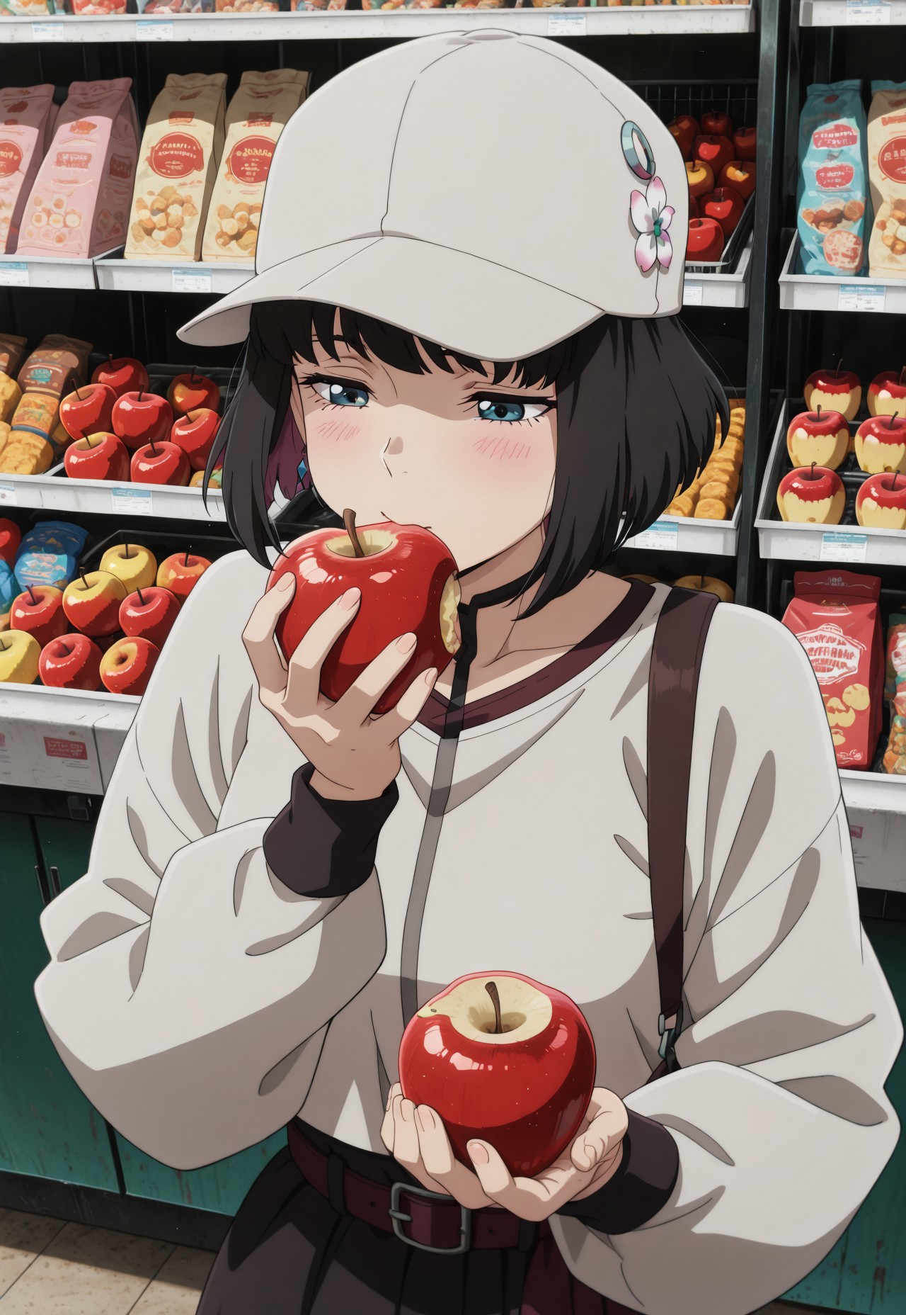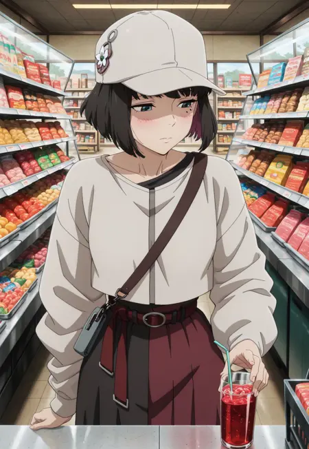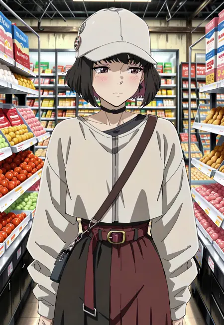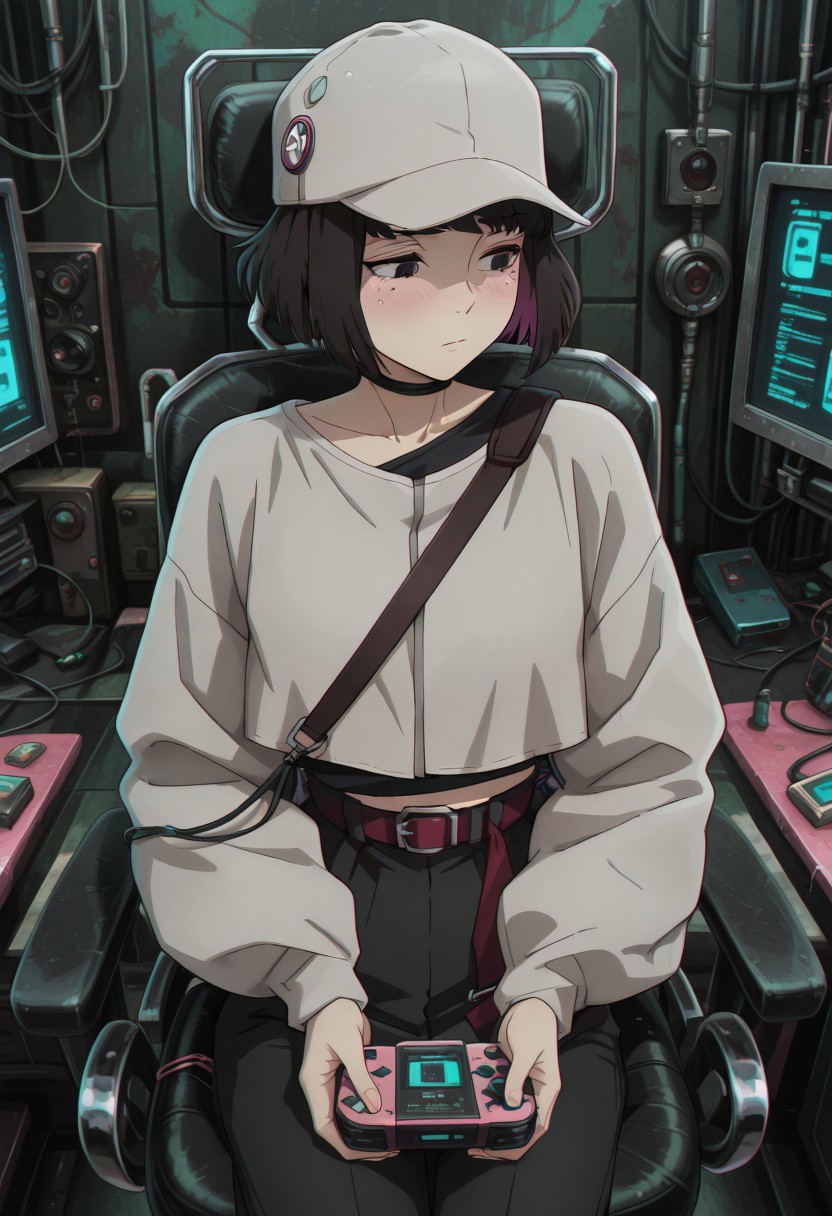 棒球帽、袜子、全身、简单背景、Eleina、长袖、短发、左眼下方有痣、动漫上色