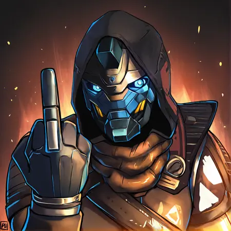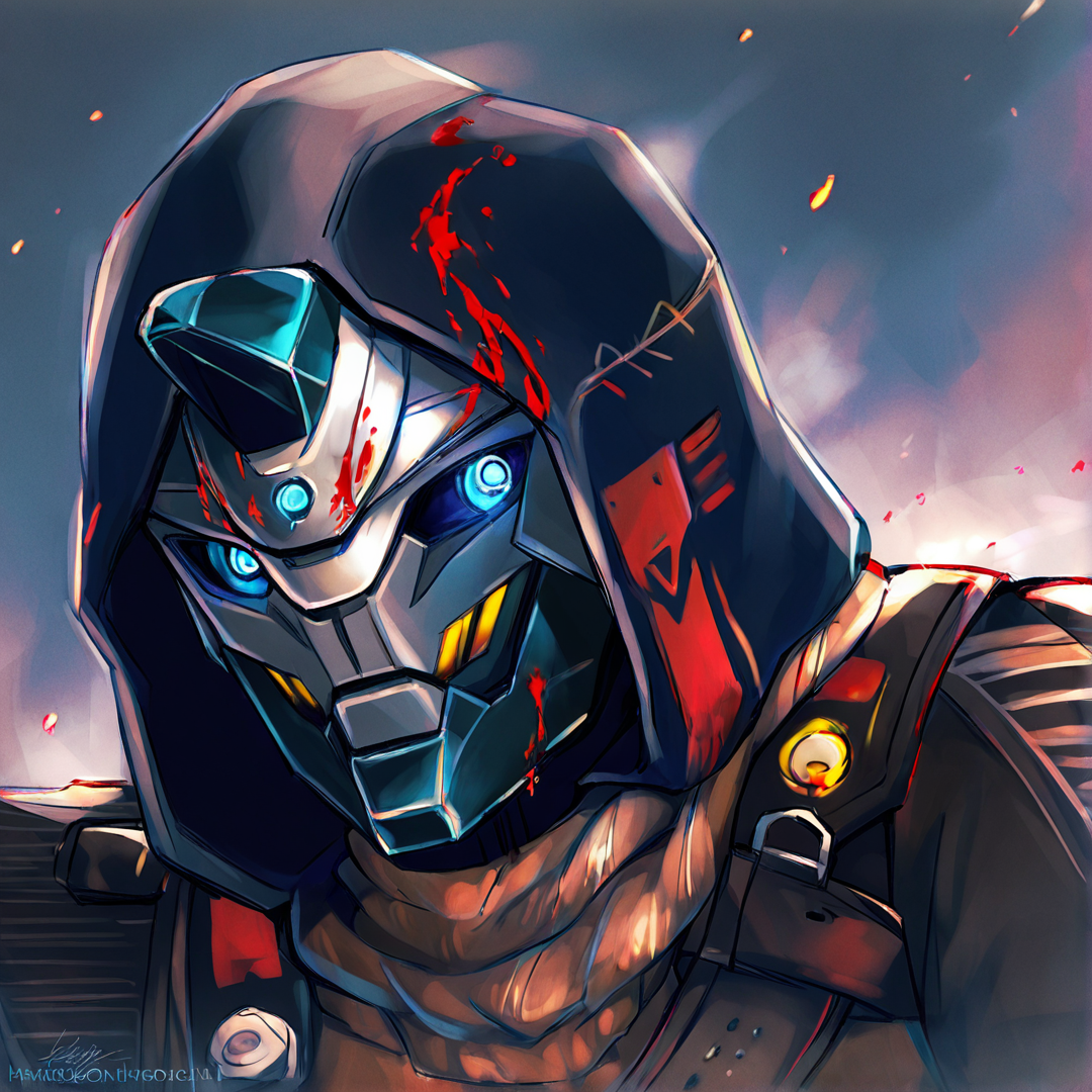 cayde,solo,hood,1boy,blue eyes,robot,glowing,