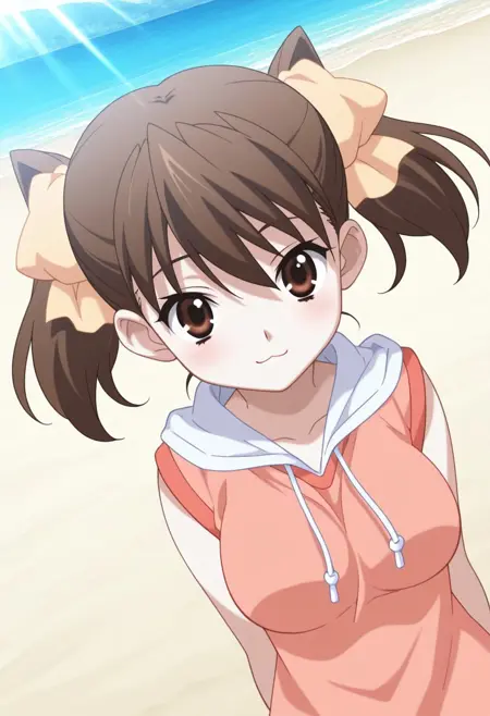 katou karen, brown hair, twintails, brown eyes, short hair, ribbon, breasts