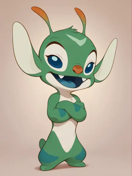 邦妮,即动画系列《星际宝贝》中的实验体149/349。她有点不稳定,因此你可能需要调整一下权重。我建议角色本体使用1,毛绒版本或与其他LoRA结合时使用1.2或更高的权重。