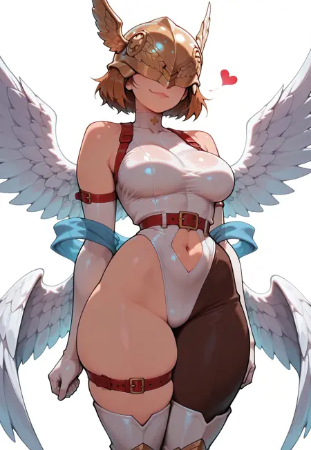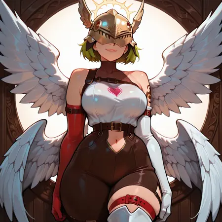 这是《艾尔登法环》中的玛莲妮娅、《海贼王》中的娜美和《数码宝贝》中的天使兽的混合体。我使用了我的原创角色Nani作为装甲。