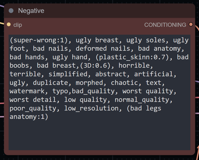 단계 2: 네거티브 프롬프트에 (super-wrong:1)을 포함하세요. 아래는 참고를 위한 제 네거티브 프롬프트 예시입니다:
