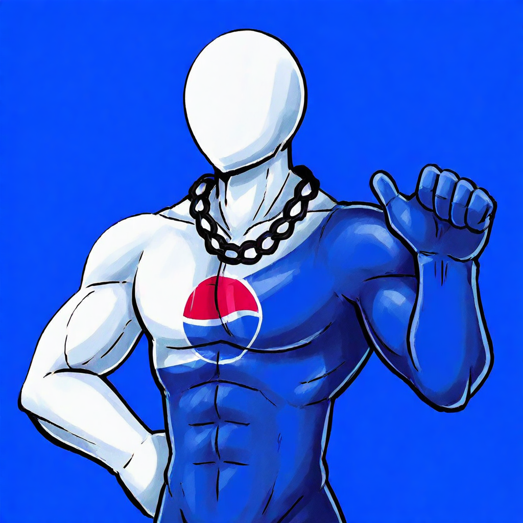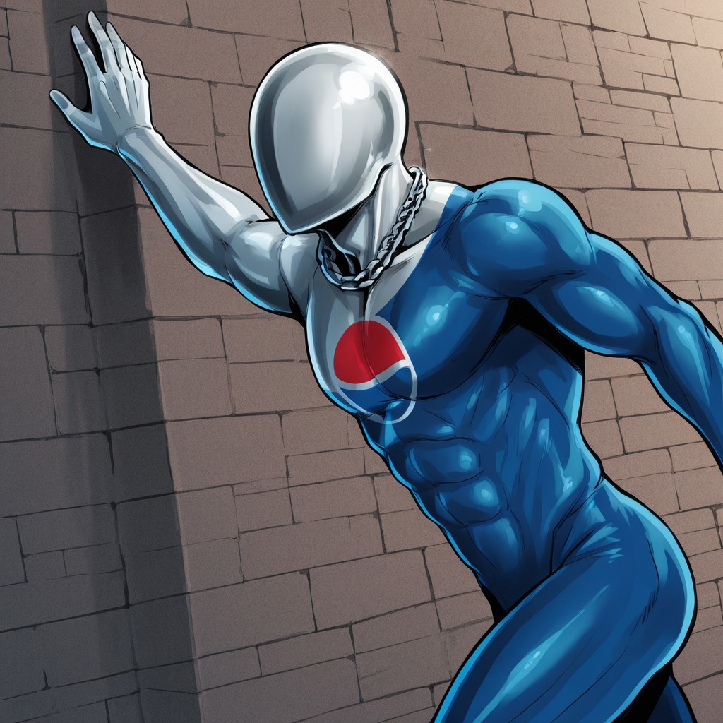Pepsiman(character), male, faceless, chain necklace, no humans, duel toned body,