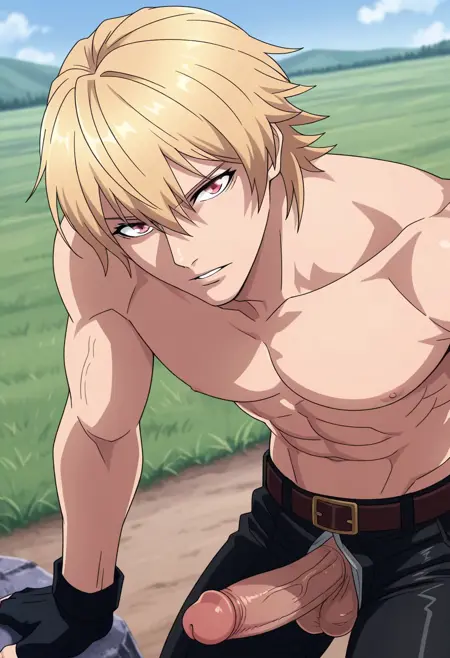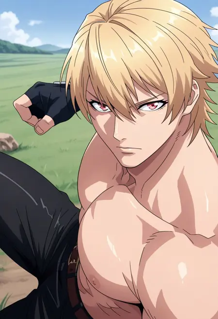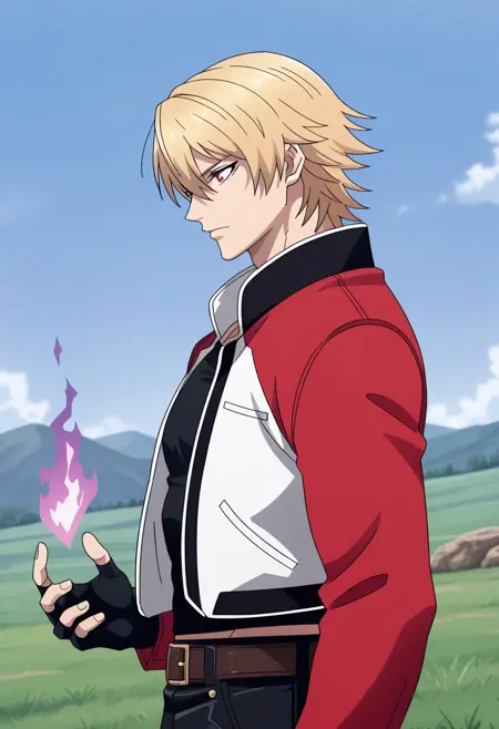 For face: CotW_Rock_PV, Rock Howard, short hair, blonde hair, hair between eyes, red eyes,