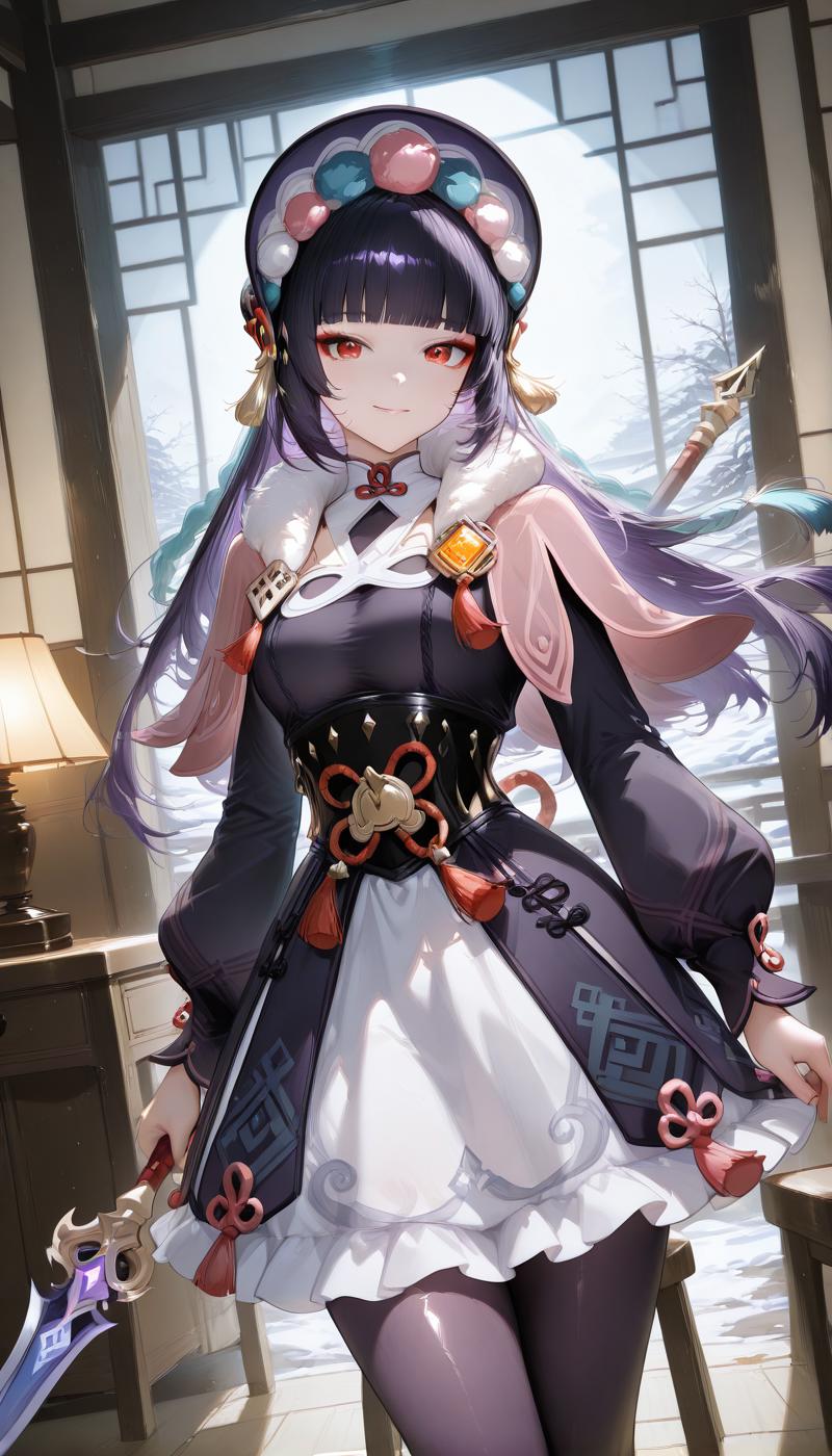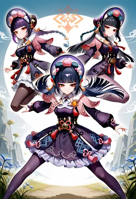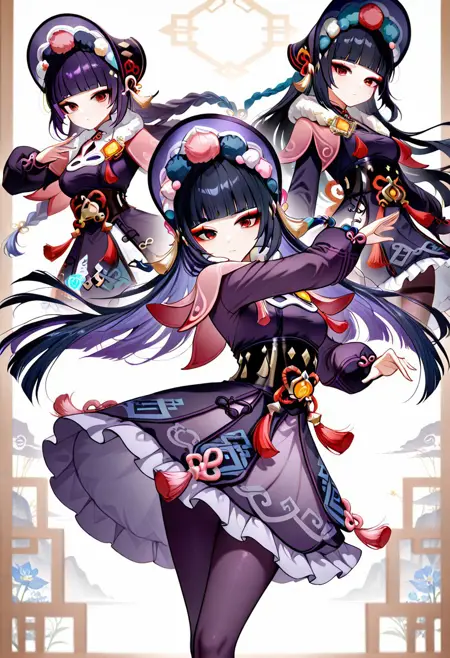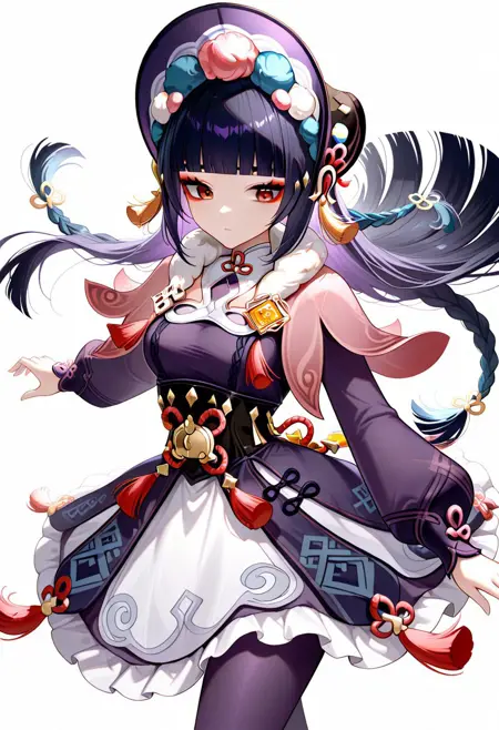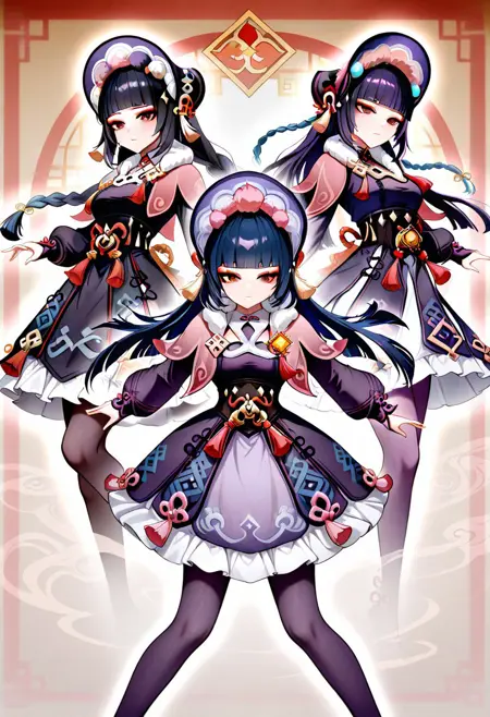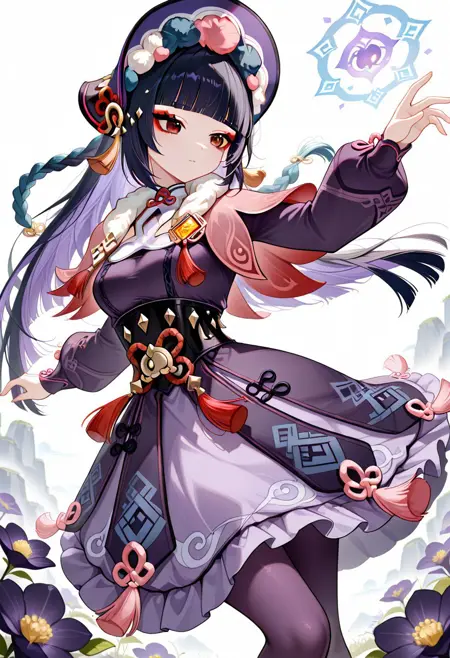 긴 소매, 드레스, 모자, 팬티스타킹, 프릴, 볼륨 있는 소매, 검은 드레스, 검은 팬티스타킹, 모피 장식, 검은 머리 장식, 캐플릿, 프릴 드레스, 다색 옷, 볼륨 있는 긴 소매, 보라색 드레스, 펌퐁(옷), 코르셋, 모피 칼라, 비전(젠신 임팩트), 보라색 머리 장식, 본넷, 꽃 매듭, 보라색 팬티스타킹, 검은 코르셋, 분홍 캐플릿, 다색 머리 장식,