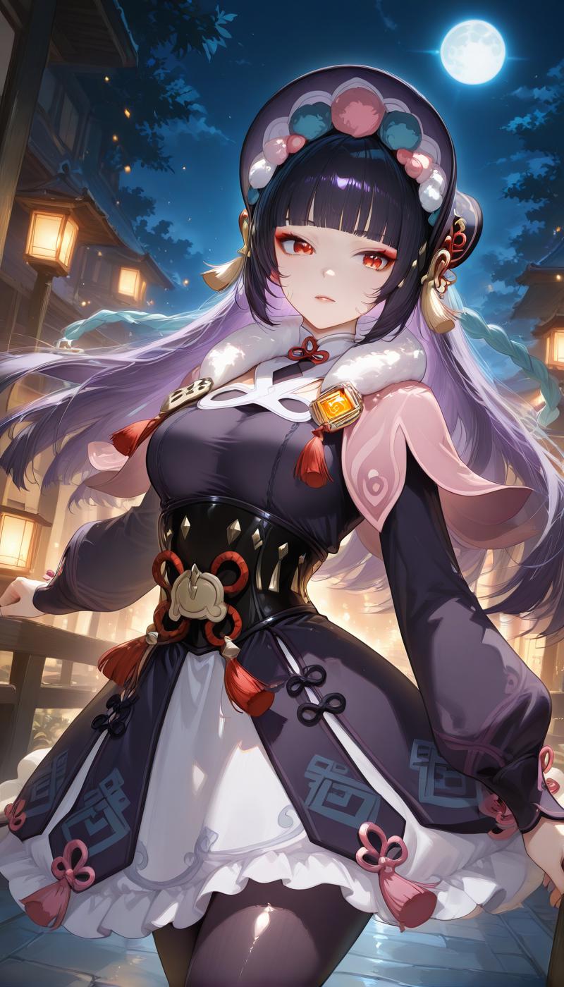 GSYunJin, 긴 머리, 가슴, 검은 머리, 머리 장식, 빨간 눈, 중간 정도 가슴, 파란 머리, 땋은 머리, 보라색 머리, 다색 머리, 단정한 앞머리, 쌍 땋은 머리, 메이크업, 테이슬, 아이섀도우, 히메컷, 빨간 아이섀도우,