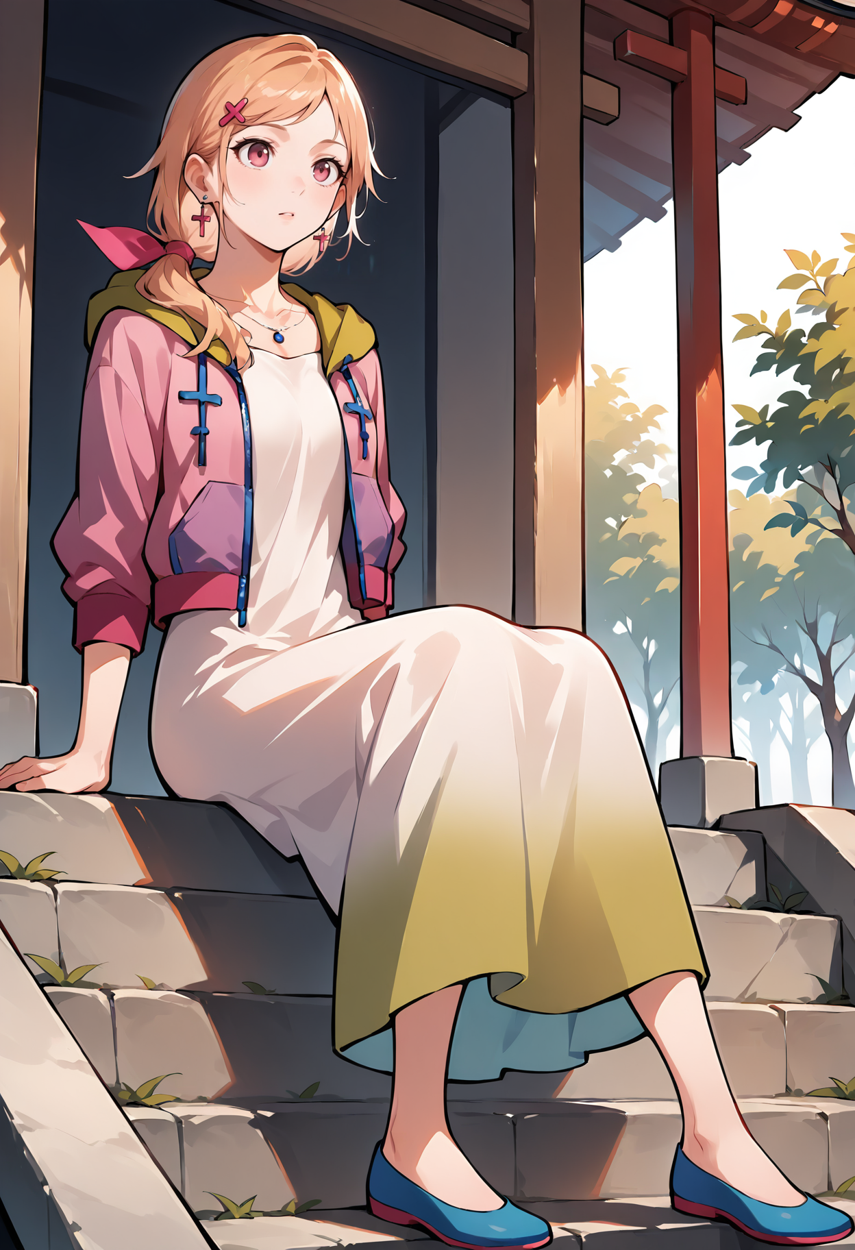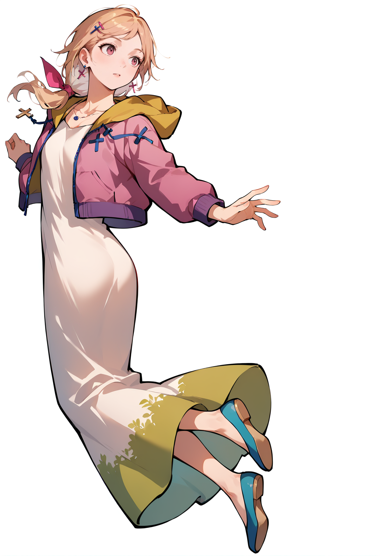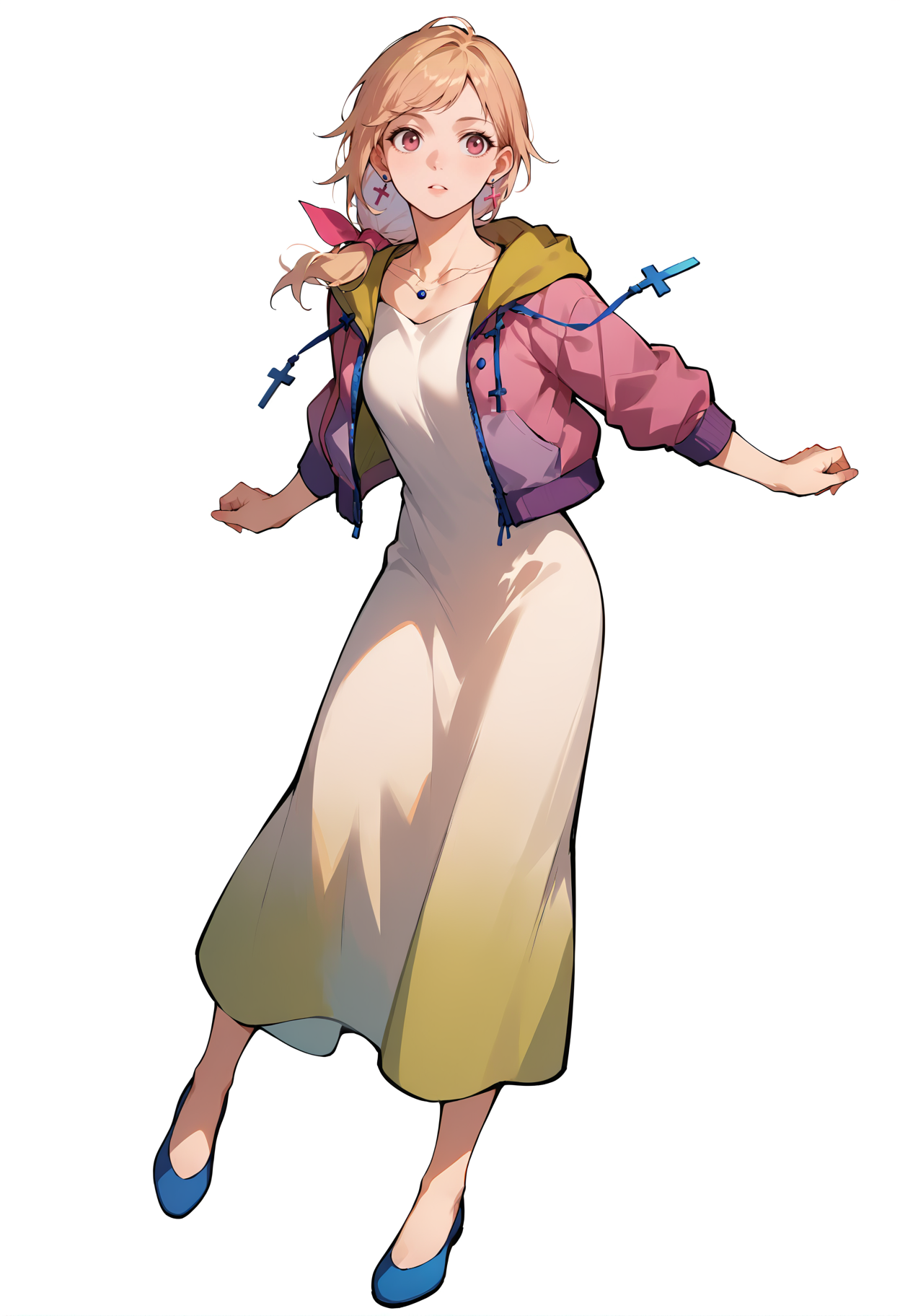 | 训练词汇 | 1girl, long hair, red eyes, white hair, blonde hair, brown eyes, hair ribbon, short hair, hair bow, ponytail, purple eyes,low ponytail, bangs, side ponytail, hair ornament, pink eyes已复制! jewelry, dress, earrings, necklace, jacket, blue footwear, open jacket, open clothes, shoes, pink jacket, white dress, long dress, hood, cross, multicolored clothes, flats, green skirt, hoodie, hooded jacket, long skirt, skirt, purple jacket, aqua footwear, hood down, long sleeves, light cross earrings, drawstring, cross necklace, breasts已复制! |