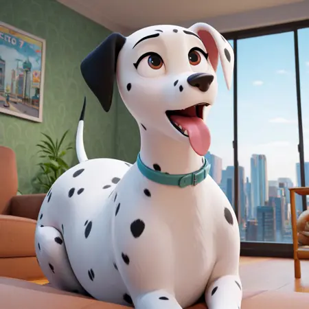 Ember, dog, Dalmatian, brown eyes, blue collar, white fur, black spots