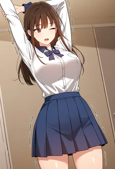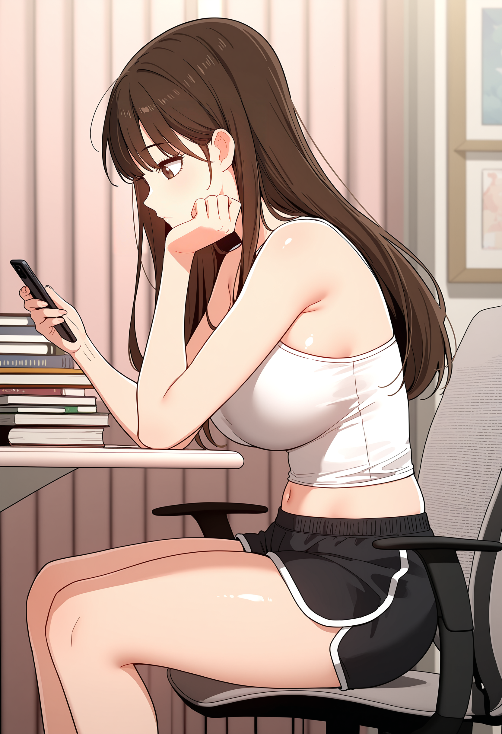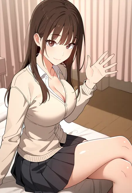 ch4ew0n、茶色の目、茶色の髪、長い髪、前髪、大きな胸