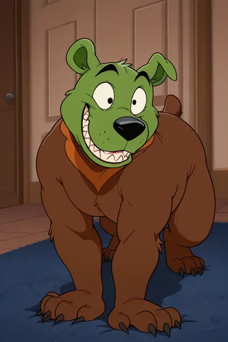 来自《 mask 》的米洛和奥蒂斯,那些戴着面具的狗。该模型使用了《面具:动画系列》的2D动画训练米洛,以及第二部电影中的想象场景训练奥蒂斯。因此没有使用电影中的3D模型。