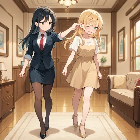 M/F用(非常に難しいですが可能):1boy, 1girl, ear pulling